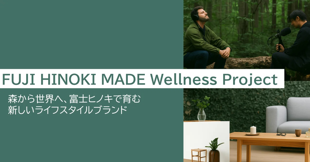 FUJI HINOKI MADE Wellness Project は、富士市のスタートアップ支援プログラム「F-ACCEL」に採択された、森林再生×循環型ビジネスの実証実験プロジェクトです。